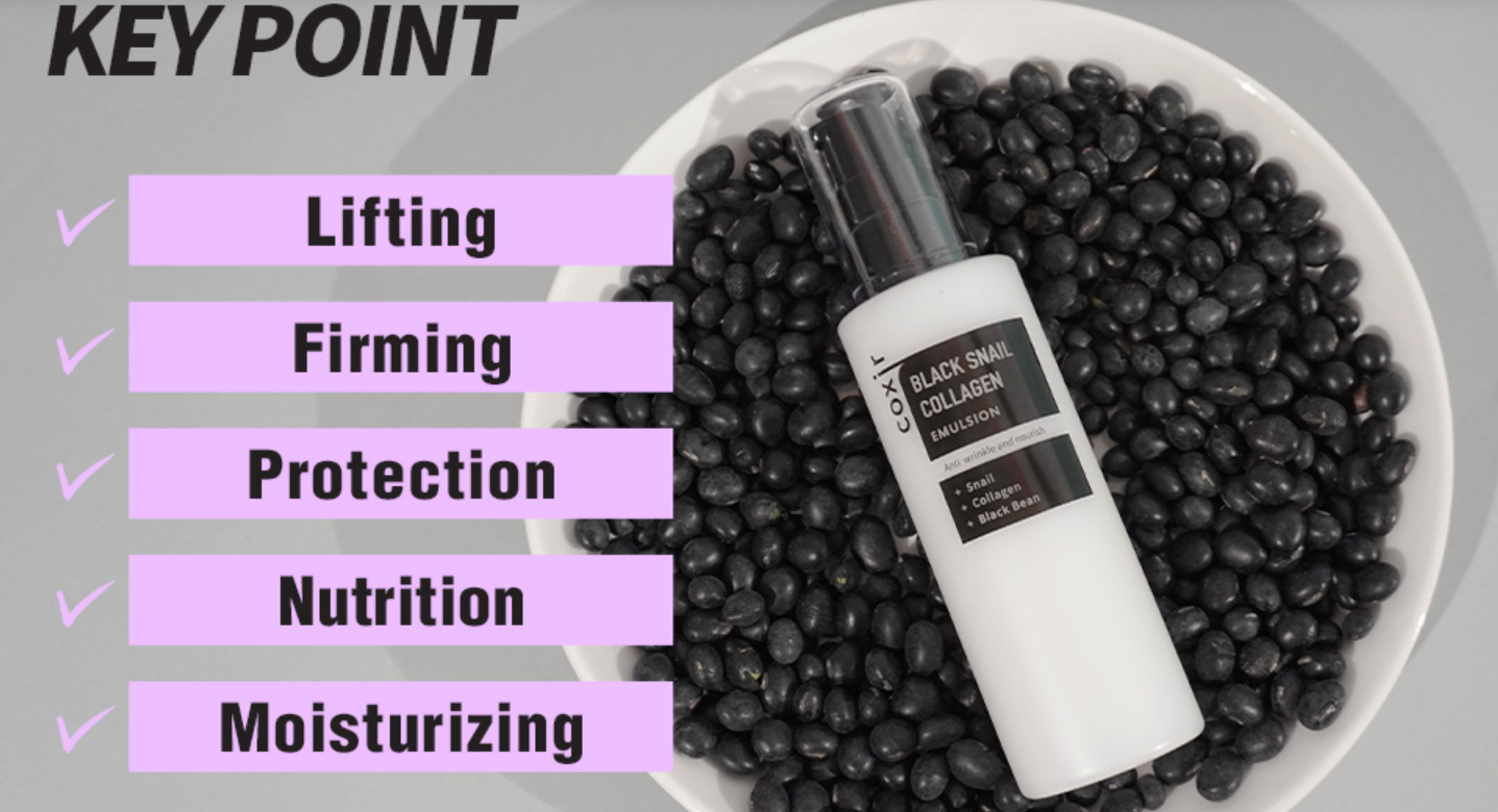 Coxir Black Snail Collagen Emulsion 100 ml | Anti Wrinkle and Nourishment | Snail Collagen Black Bean