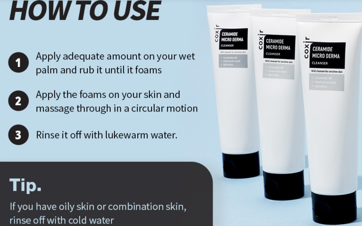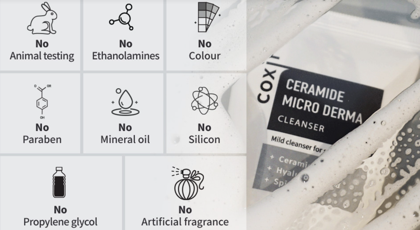 Ceramide Micro Derma Cleanser forms a protective layer that prevent moisture loss and protects against visible damage from polluted and other environmental cause.