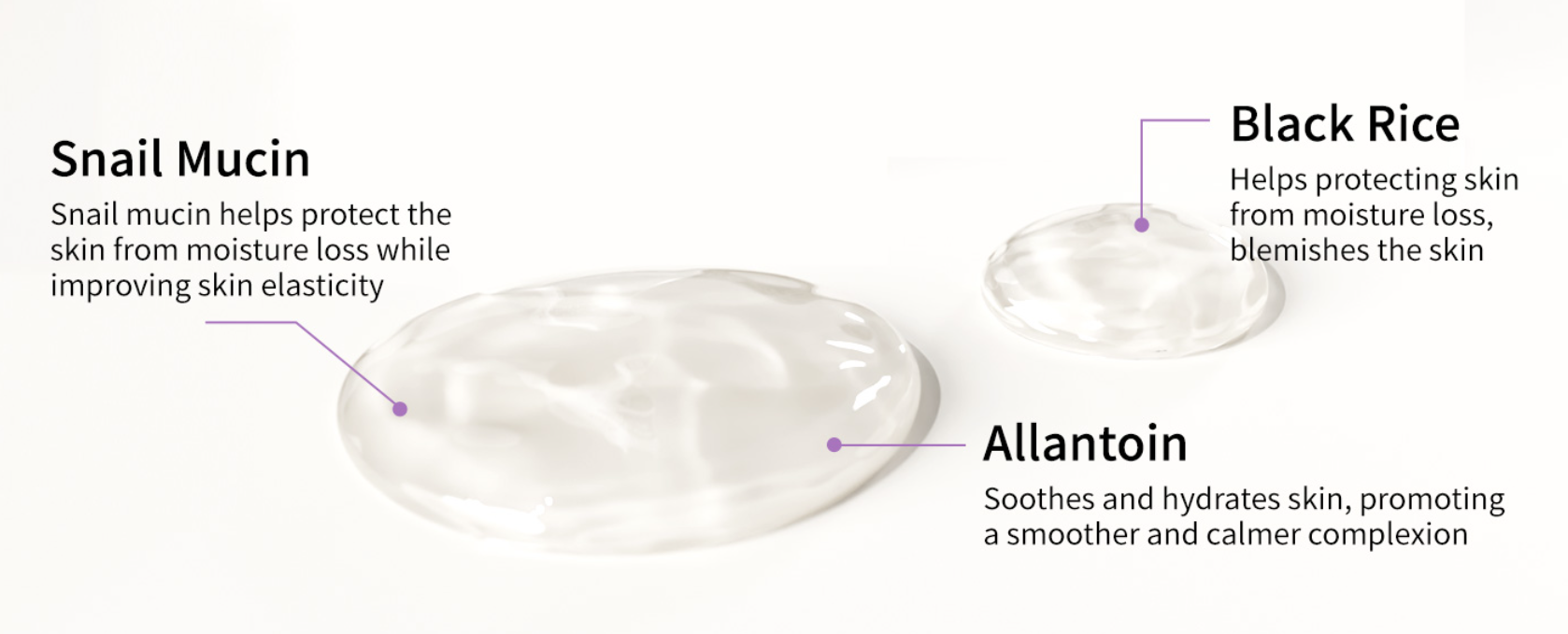 • Active Blends: Ginseng berry to reduce puffiness, Peptide to improve the skin barrier, Allantoin for hydration, and Betaine to maintain skin's hydration.