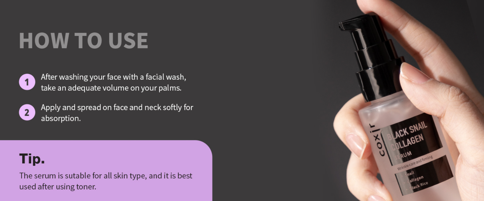 The Black Snail Collagen Serum contains the ingredients of snail and collagen to protect skin from dryness by maintaining moisture levels and providing luminance to the skin.