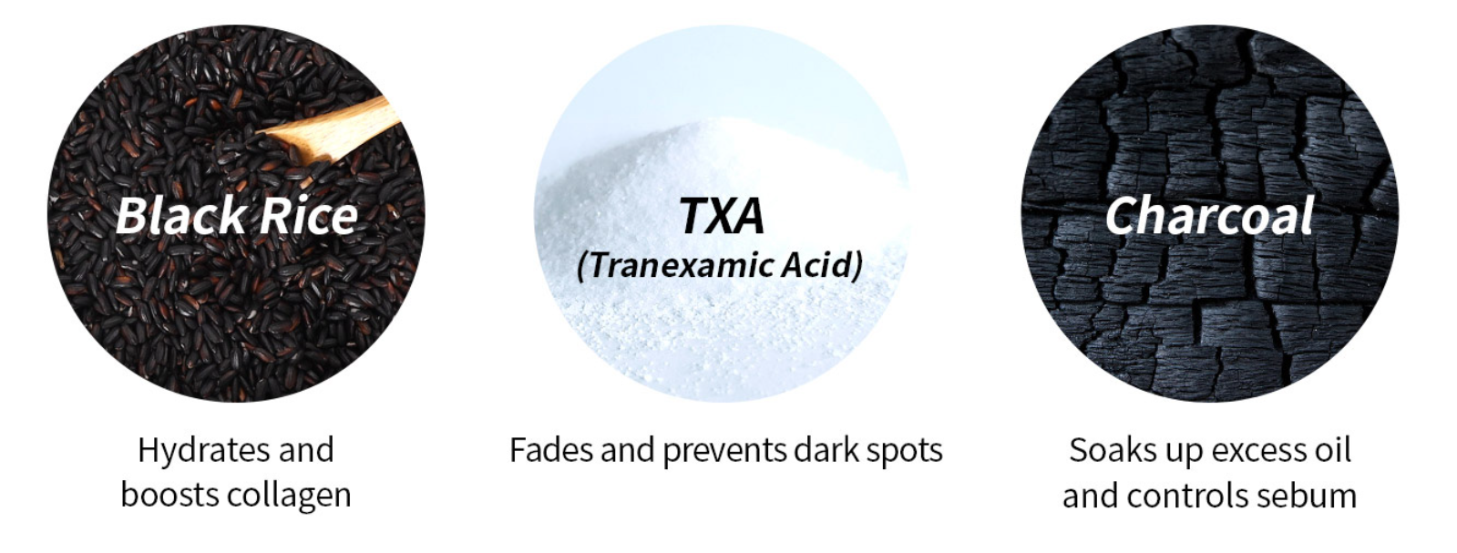 Pore Clearing & Purifyuing, infused with Black Rice, TXA and Charcoal deeply cleanses and purifies clogged pores.