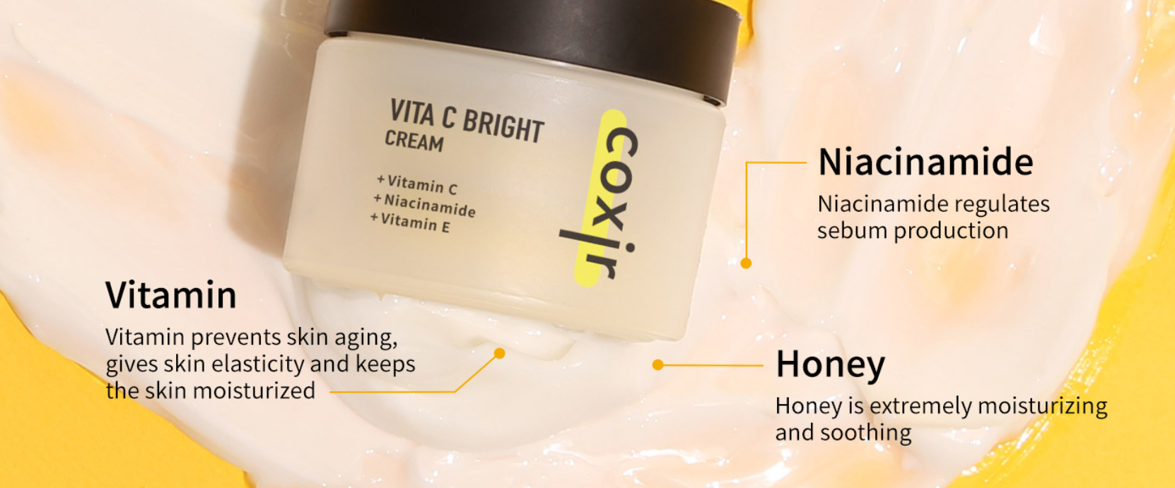 The Cream contains vitamins for keeping skin bright and beautiful by brightening dark skin.