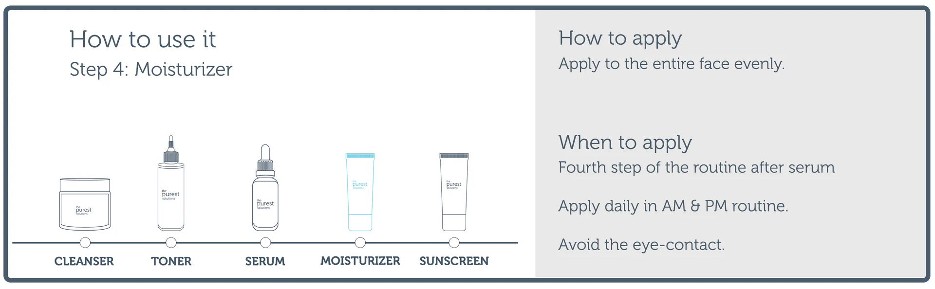 Apply a pea sized cream after serum treatment on the entire face with massaging movements. It is suitable to apply to the whole skin in the morning and evening routines.
