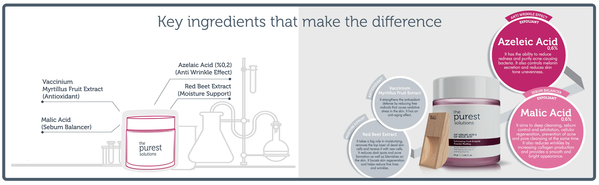 - Accelerating the skin's regeneration cycle with instant peeling effect.